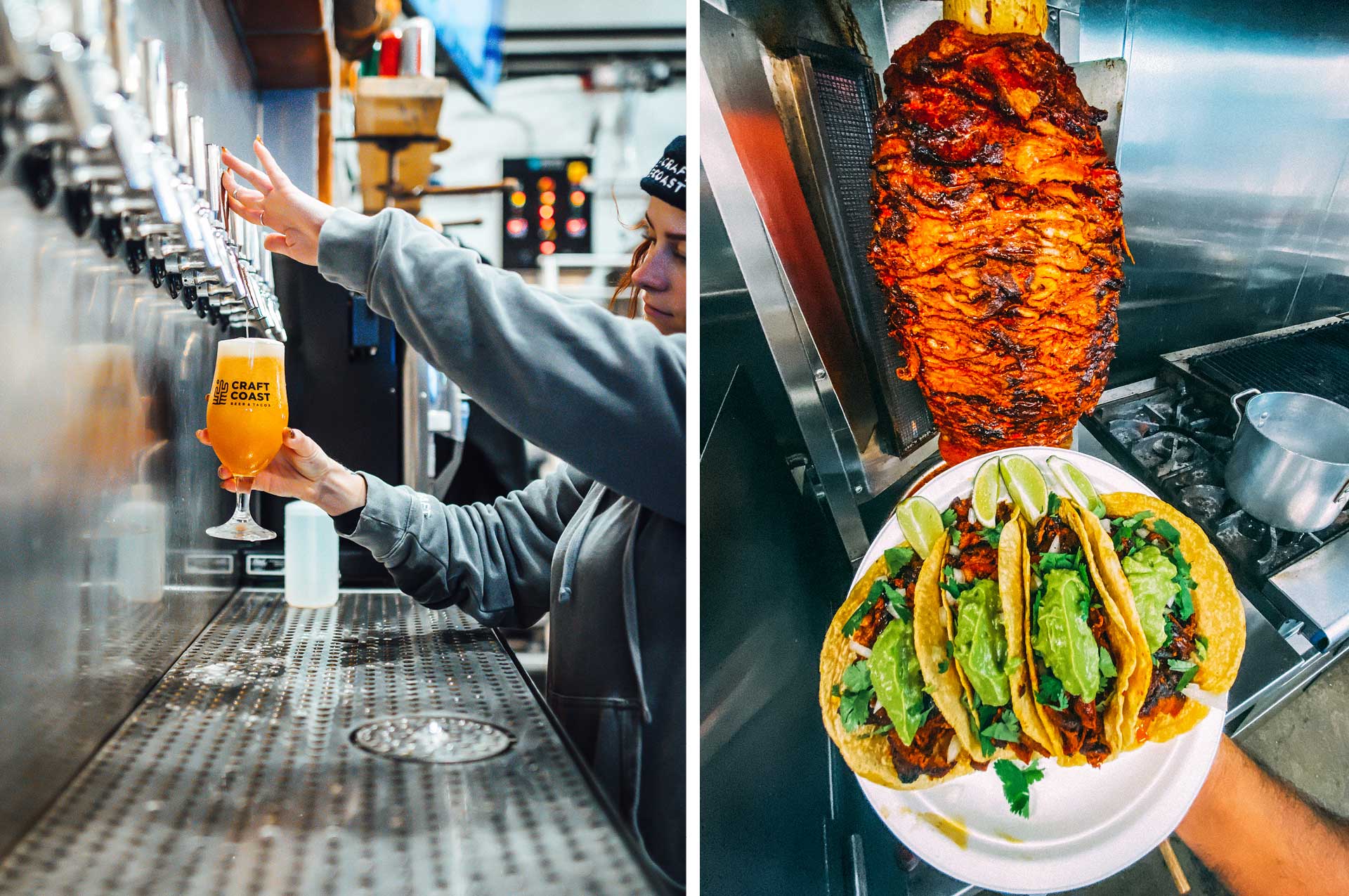 “You have to, especially if you’re building it and operating it,” he says. “It’s not cheap to build a kitchen, and it’s not cheap to staff a kitchen, but it is extremely important because not everybody drinks, and not everybody who walks into Craft Coast is even drinking age. We get families, teenagers, kids, people coming up from the beach. … Obviously, we want everybody drinking beer—that’s where our heart is. But such an important thing today is, if there’s opportunity, you’ve got to take it. There are people who are just wanting the tacos, and that’s totally okay. That’s still a massive part of our business. There are people who come in and drink a couple pints a day, and they never eat. That’s totally fine, too.”