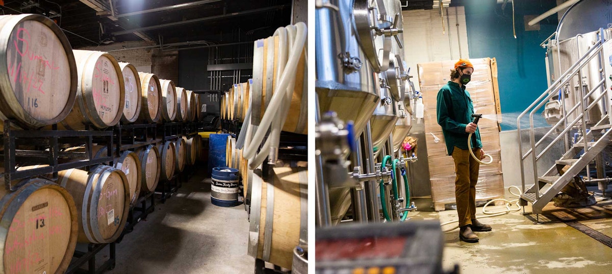 He is naturally drawn to lower-strength classic styles, including pale ales, saisons, milds, and stouts. (Lately, he says, he’s often drinking Guinness.) The brewery also is known for its mixed-culture, oak-aged beers, often featuring local fruits, herbs, or other botanicals—peaches, rhubarb, lemongrass, berries, cherries, and more.