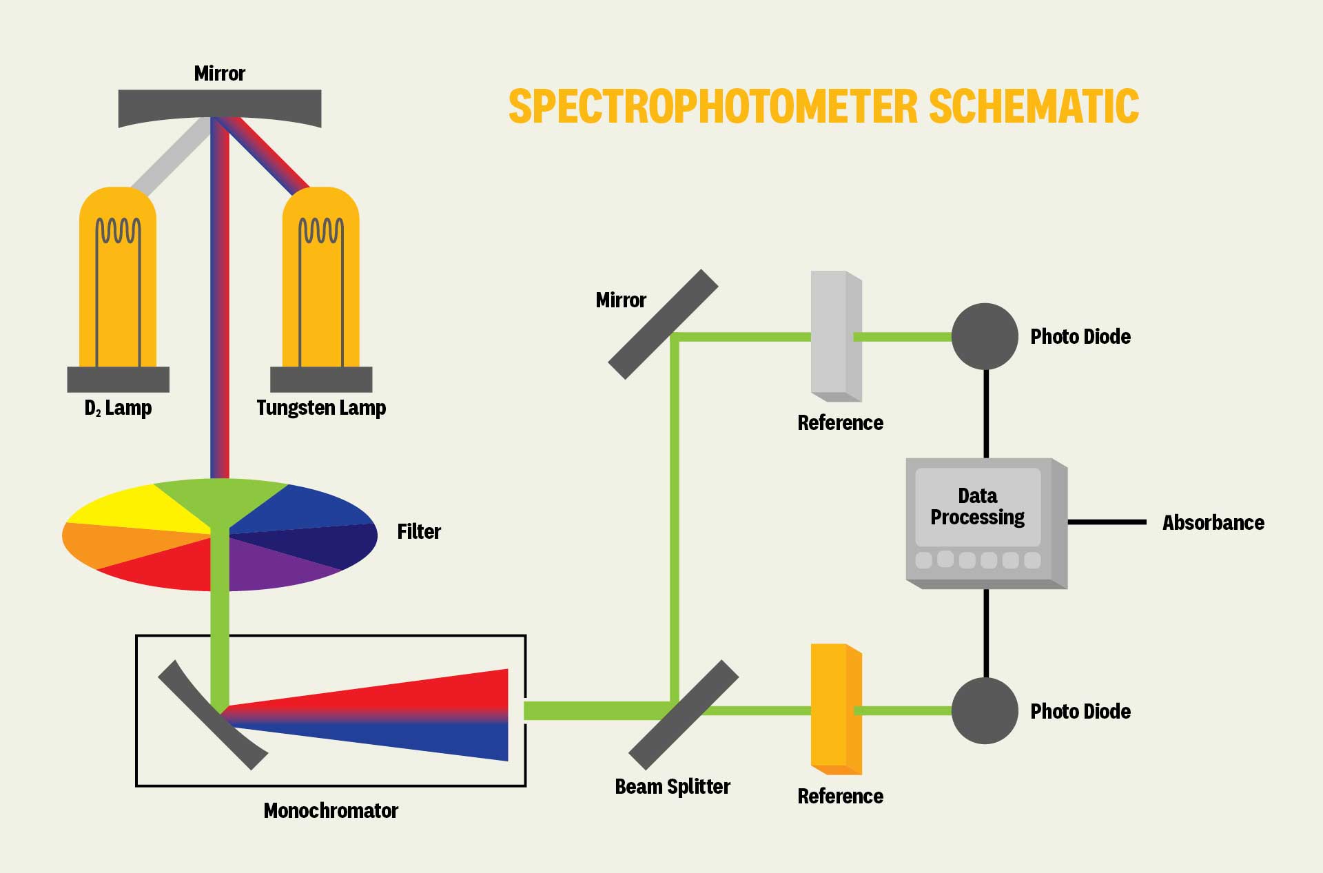 - To start, zero the spectrophotometer with distilled water, which gives the instrument a zero point for comparison with the beer sample.